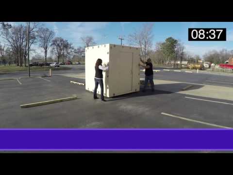 The base unit measures 7’w x 8’l x 8’h and weighs approx 600 lbs, making it easy to move and effortlessly assembled by unskilled labor in 10 minutes.
